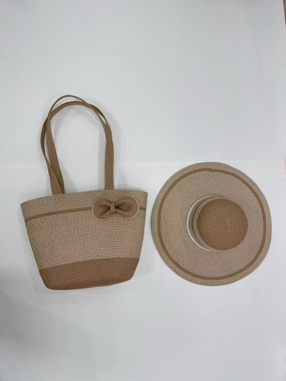 Be the first to review “Beige Straw Tote Bag and Matching Wide-Brim Sun Hat Set”